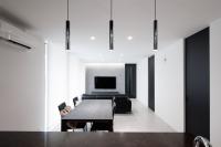 このモノトーンでホテルライクな家の内観デザインとインテリア設計。