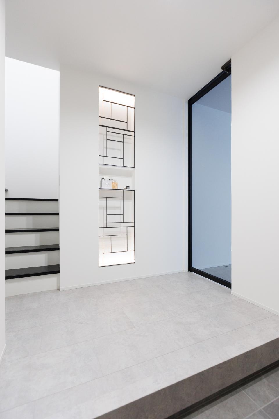 壁や床、家具などの要素はモノトーンで統一され、モダンでクリーンな印象を与えます。