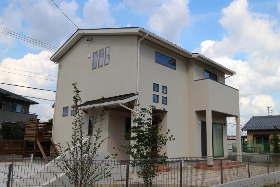 白い塗り壁の外観、テーマはカフェスタイルです。