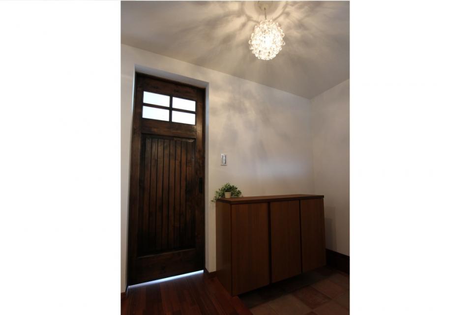 無垢の扉・玄関収納などとても雰囲気のある空間です。