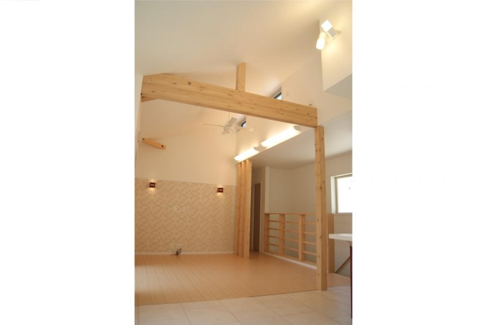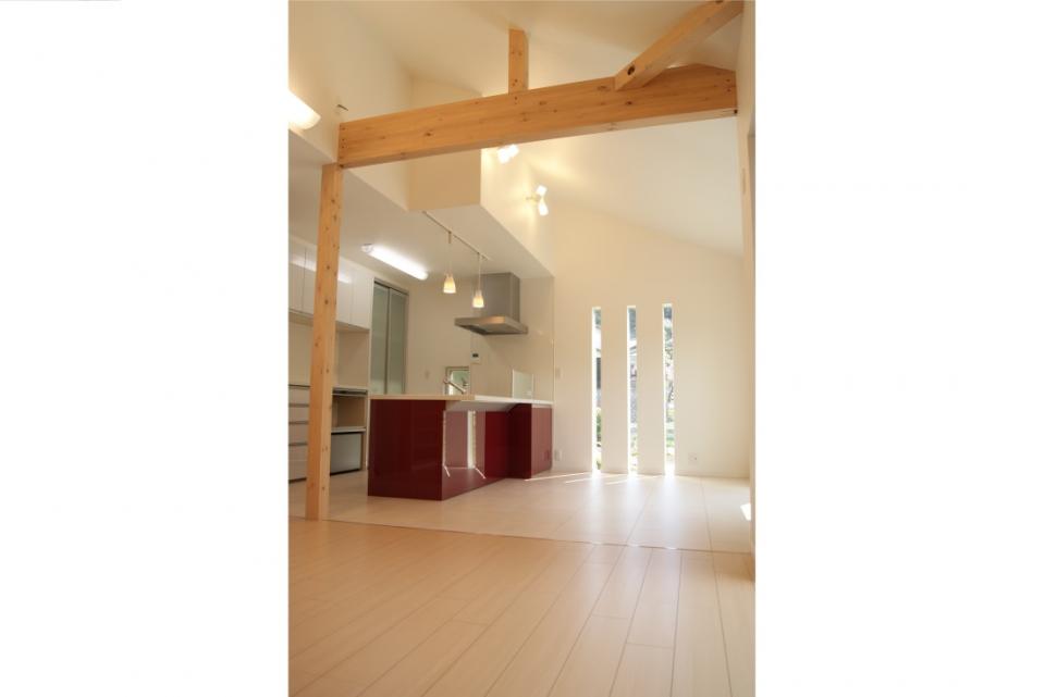 勾配天井で天井を高く、より開放的に…。床のお色をLとDKで変えてあり、とってもおしゃれ^^*