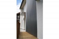 シンプルでスタイリッシュな外観。金属の格子は、目隠しの役割も…!