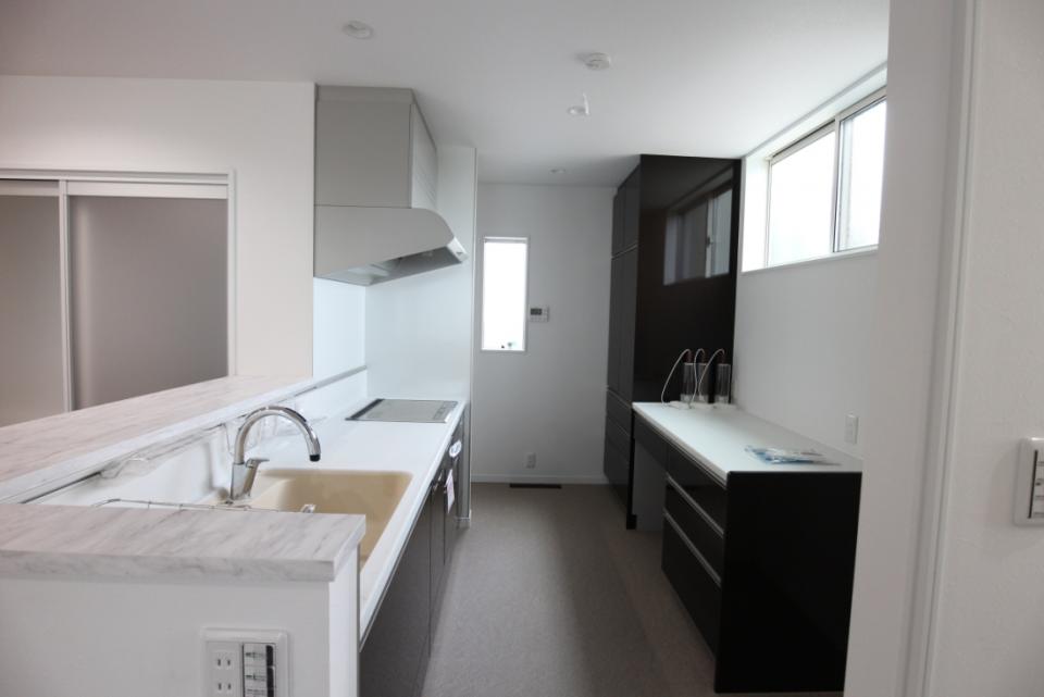 豊富な収納と広々とした作業スペースを兼ね備えたキッチンです。