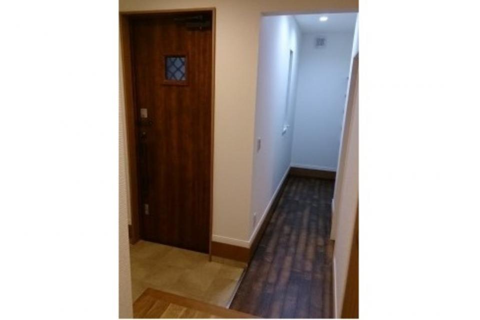 可愛い玄関扉です。玄関横を抜けると収納になっています。