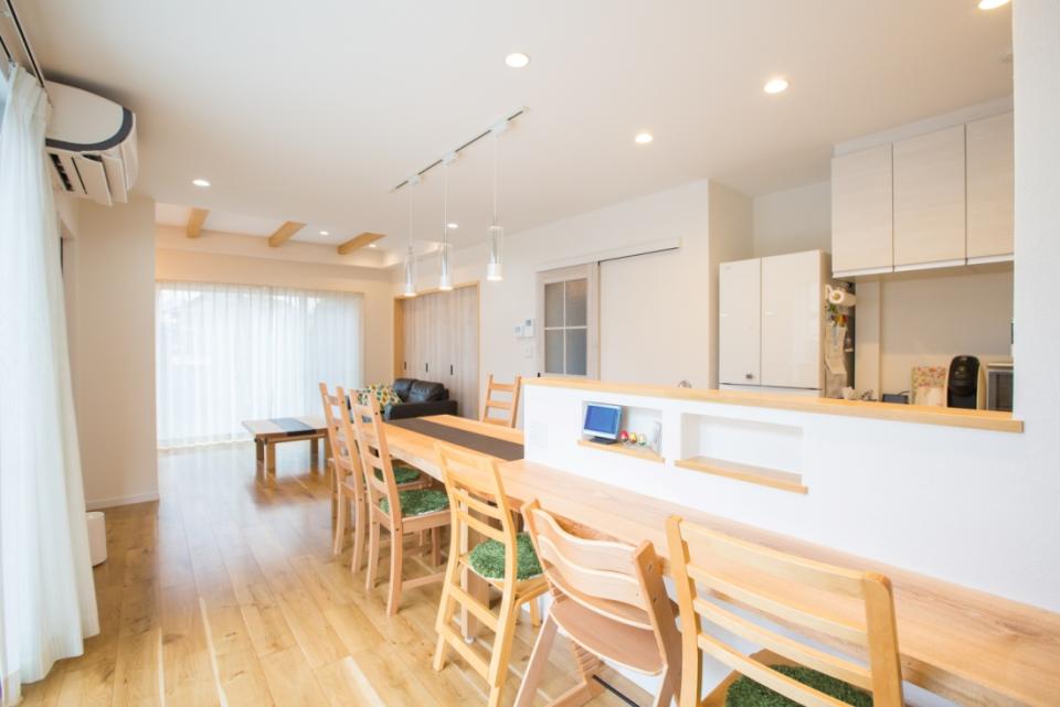 キッチンから一直線に伸びるダイニングは家事動線に無駄がありません。