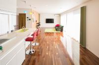デザイン階段や広々とした吹抜けのある玄関ホールと、生活領域であるLDKの間に、可動間仕切りを配置し、一体化して使用できるように工夫しました。