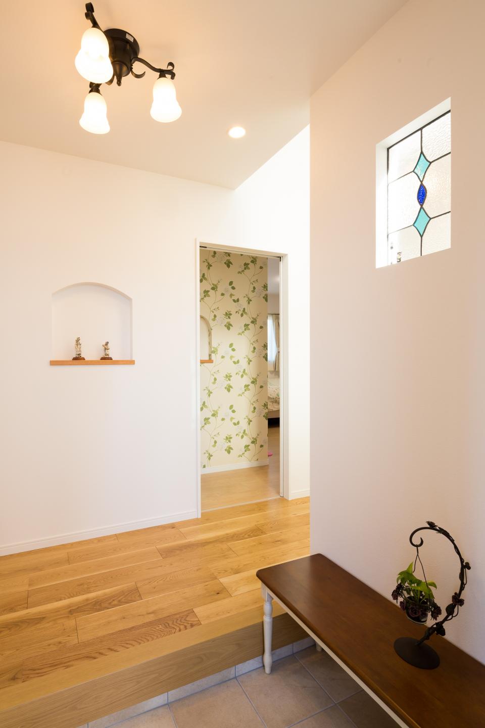 玄関です。ステンドガラスから優しい光が入ってきます。