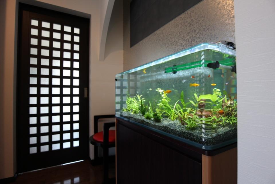 玄関ホールには大きな水槽。 癒しの空間となっています。