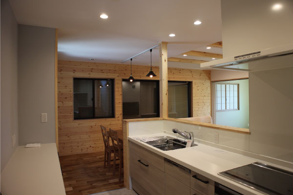 対面キッチンはご家族の様子が見守れて、 作業する手元はカバーしてくれます。